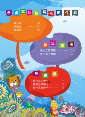 各 處 室 活 動 照 活 動 介 紹 教務處………………18 學務處………………23 輔導處………………26 生 學 生 活 學生文章專欄………………34 學生書法專欄………………74 榮 榜 譽 教務處榮譽榜……………77 輔導處榮譽榜……………79 學務處榮譽榜……………79