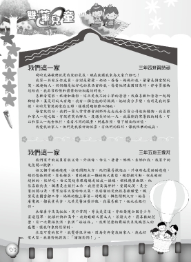 專 我家一共有五位成員,分別是爺爺、奶奶、爸爸、媽媽和我。爺爺是個愛開玩