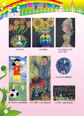 404-唐冠宇 404-林雅雯 405-顏榛儀-李丞恩- 王家芃-蘇琝 406-吳佳恩-國劇臉譜 406-班級共作-快樂運動趣 405-許淯傑--水墨--偶戲表演 405-袁音--版畫--籃球場上