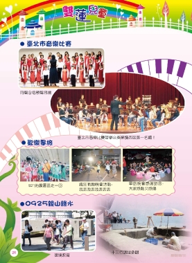 臺北市音樂比賽 同聲合唱歌聲昂揚 臺北市音樂比賽管樂合奏榮獲西區第一名唷! 歡樂畢旅 921地震園區走一回 瘋狂有趣晚會活動- 畢旅晚會感謝師恩- 我丟我丟我丟丟丟 大家感動又感傷 0925親山綠水 十三行遺址參觀 環境教育