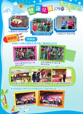 蓮 179 期 0 體育表演-最可愛的旗手 0 體育表演-瘋狂變裝 0 體育表演-專業的司儀 輔導室 特教組 ★102下特教班體育表演活動打擊樂節目表演 特教班體育表演活動打擊 特教班體育表演活動打擊 樂節目表演 樂節目表演 ◎1030305特教知能研習-我的過動人生 教師專心聆聽講師演講 講師分享自我求學經驗 黃主任瓊閱頒發講師感謝狀 ★1030321特教班參與校慶感恩祈福晚會表演 特教班師生打擊樂曲表演 師生認真賣力演出 6 7