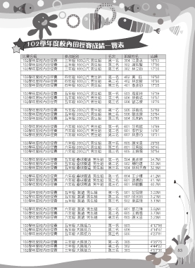 102學年度校內田徑賽成績一覽表