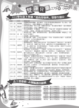 102學年度下學期「最高榮譽獎」榮譽生簡介