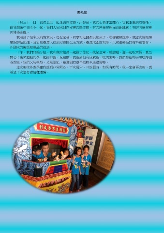 這次的校外教學讓我感到非常開心,下次週六、日放假時,如果有時間,我一定會再去的,真