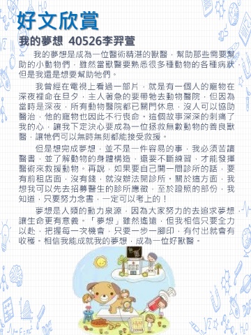 我的夢想是成為一位醫術精湛的獸醫,幫助那些需要幫
