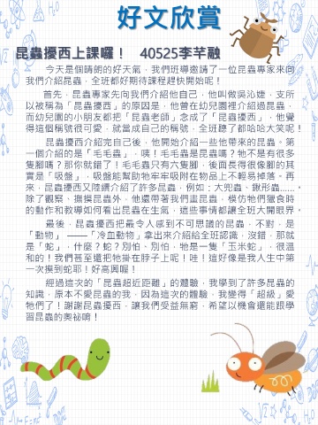我們介紹昆蟲,全班都好期待課程趕快開始呢!