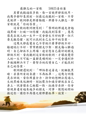 暗,丟棄所有的負擔,不再孤單。」這幾句詞像