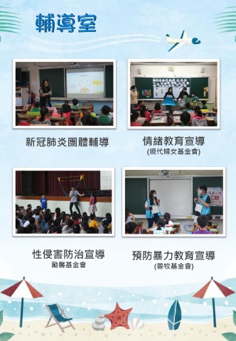 新冠肺炎團體輔導 情緒教育宣導 (現代婦女基金會) 性侵害防治宣導 預防暴力教育宣導 勵馨基金會 (善牧基金會)