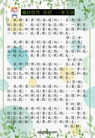 童詩仿作 你好 一年五班