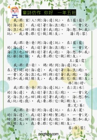 童詩仿作 你好 一年五班