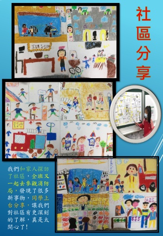 我們和家人探訪 了社區,全班又 一起去參觀消防 局,發現了很多 新事物,同學上 台分享,讓我們 對社區有更深刻 的了解,真是太 開心了!