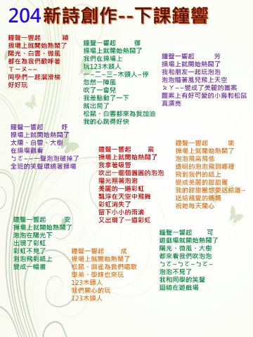 陽光、白雲、微風 操場上就開始熱鬧了 鐘聲一響起 芳