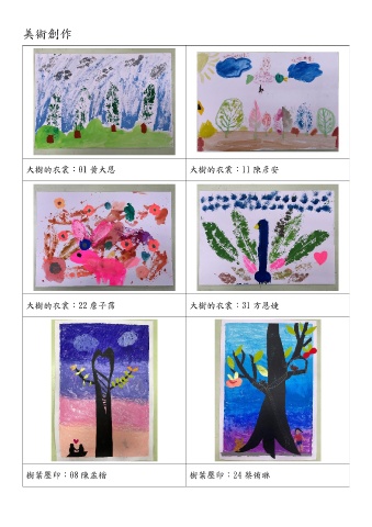 美術創作 大樹的衣裳:01 黃大恩 大樹的衣裳:11 陳彥安 大樹的衣裳:22 詹子霈 大樹的衣裳:31 方恩婕 樹葉壓印:08 陳孟楷 樹葉壓印:24 蔡侑琳