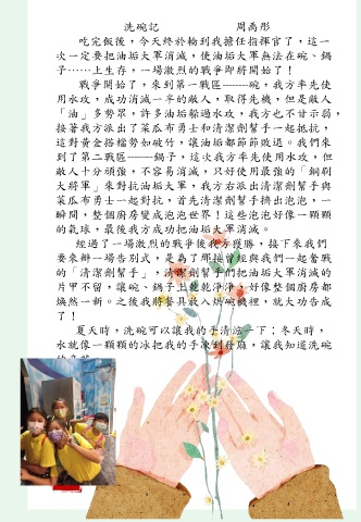 水就像一顆顆的冰把我的手凍到發麻,讓我知道洗碗
