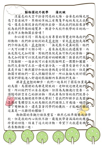 紹動物,我們班分配到的是裘老師,首先裘老師先為我