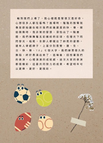 ? 蹈 0 終 於 表 演 出 來 了 0 l 場 Ú 0 回 想 我 們