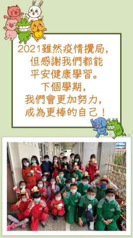 2021雖然疫情攪局, 但感謝我們都能 平安健康學習。 下個學期, 我們會更加努力, 成為更棒的自己!