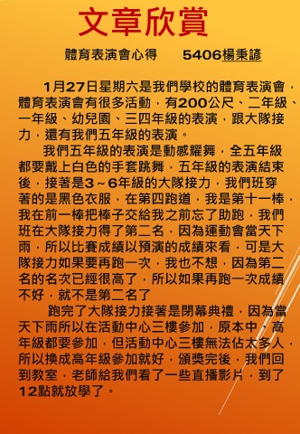 體育表演會心得 5406楊秉諺