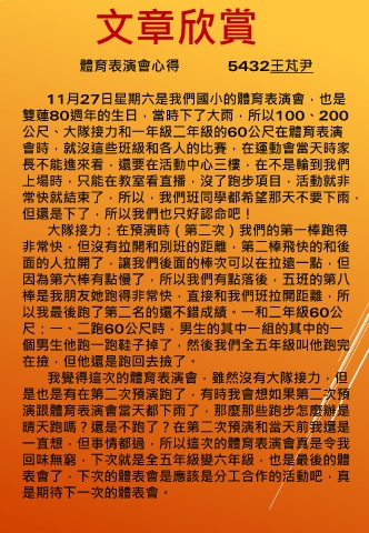 我覺得這次的體育表演會,雖然沒有大隊接力,但