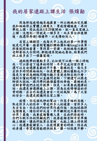 出許多時間跟妹妹玩。但是實體上課的優點也不少,