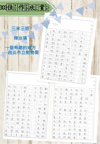 303佳作欣賞 三年三班 陳治瑀 一個有趣的地方 ---台北市立動物園 接續 下一頁