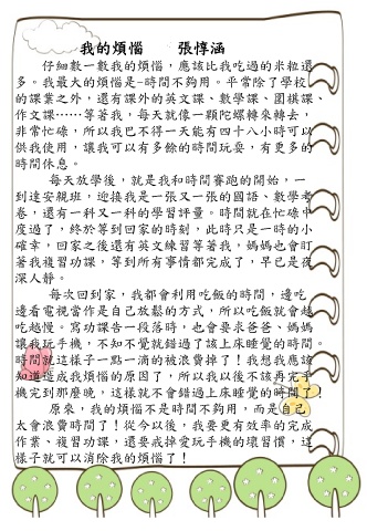 多。我最大的煩惱是-時間不夠用。平常除了學校