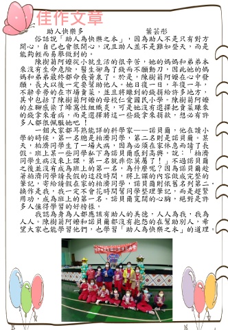 望大家也能學習他們,也學習「助人為快樂之本」的道理。