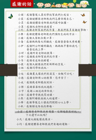 小樂:感謝健體蔡老師教我們預防生病的方法。